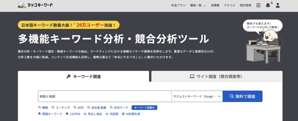 キーワード調査に、調べたいキーワードを入力して、無料で調査をクリックします!